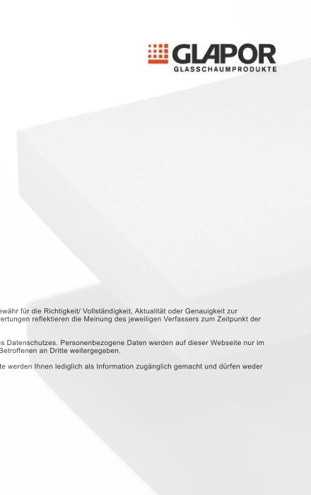 Die Glapor GmbH stellt ihr Informationsangebot trotz sorgfältiger Beschaffung und Bereitstellung nur ohne Gewähr für die Richtigkeit/ Vollständigkeit, Aktualität oder Genauigkeit zur